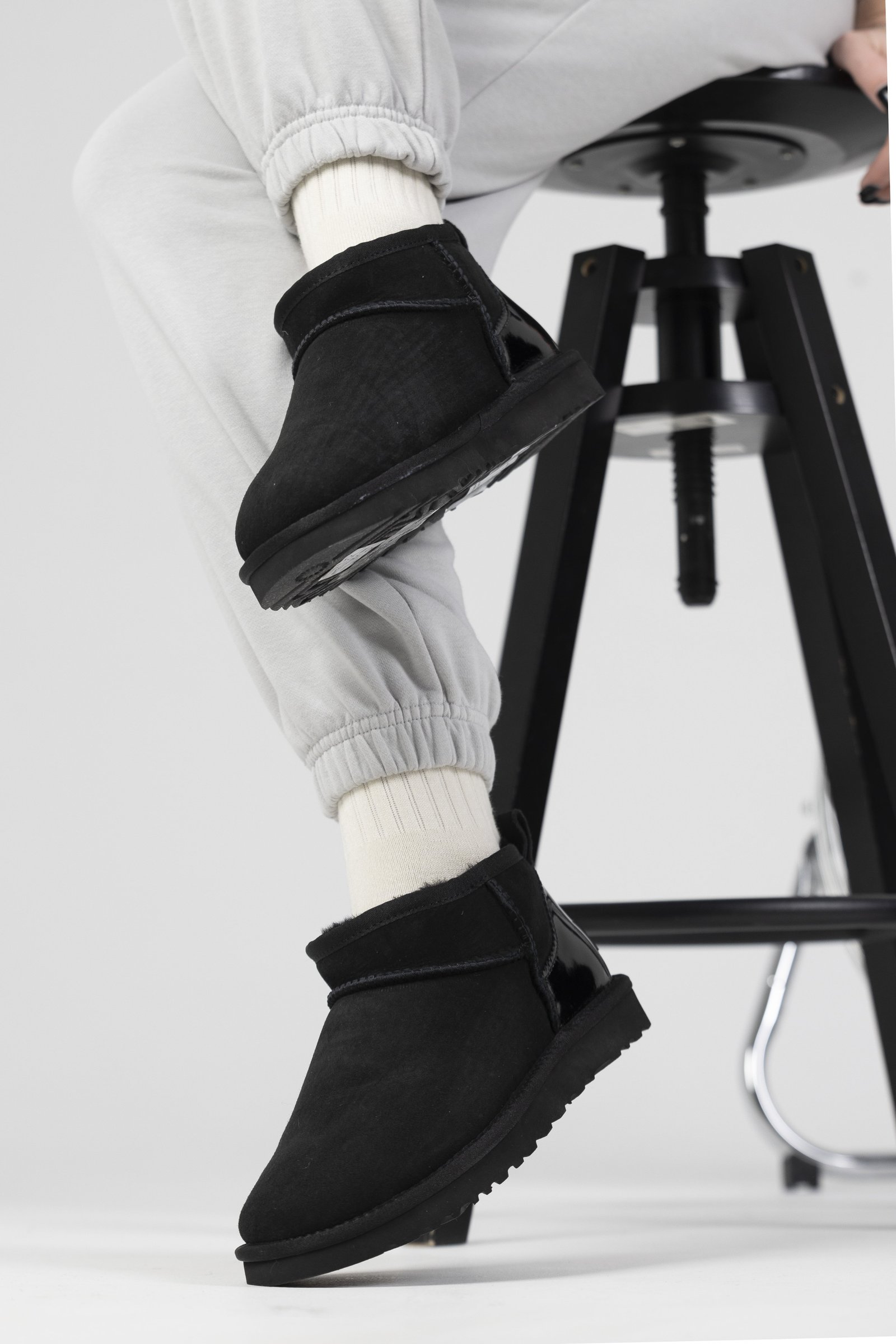 Женские Зимние UGG Ultra mini Black Lacquer — натуральна замша, натуральна овчина.