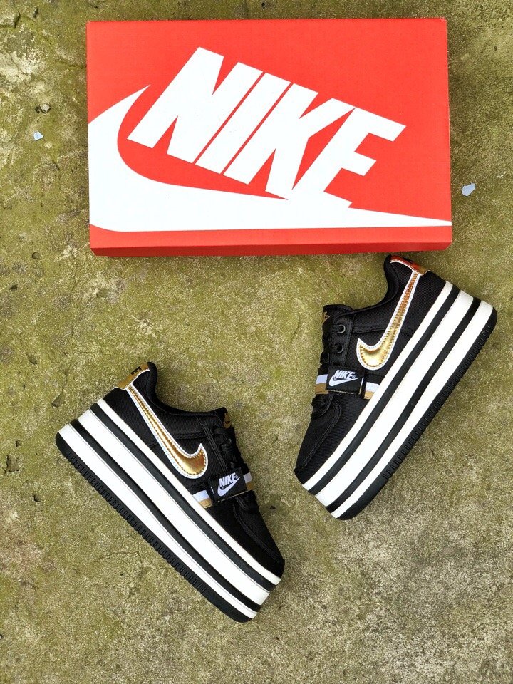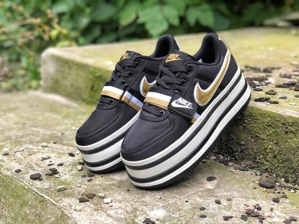 Женские кроссовки Nike Vandal 2K Black Metallic Gold с высокой платформой демисезонные.