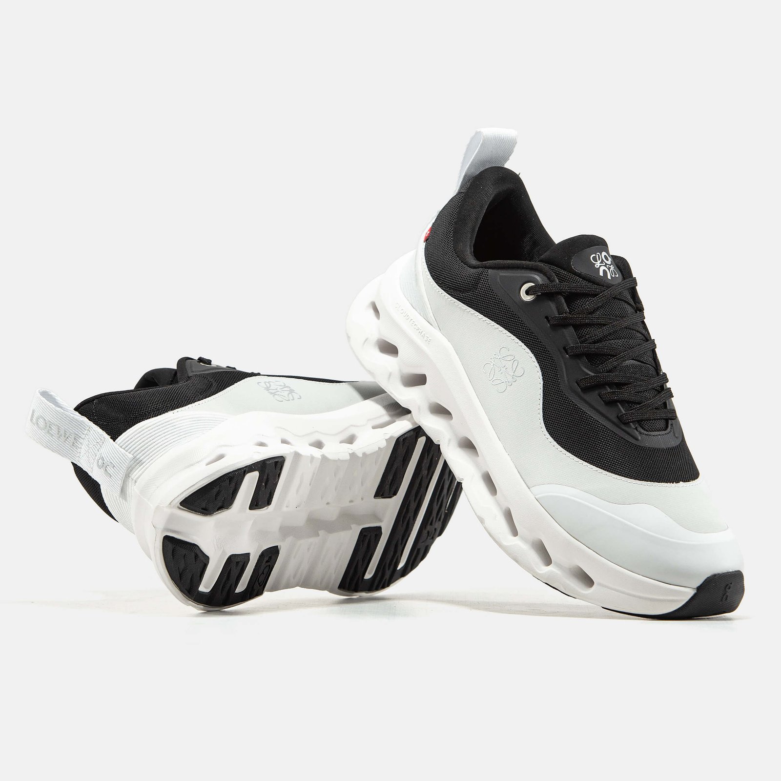 On Running Cloudtilt 2.0 створені в колаборації з люксовим брендом LOEWE. Ця модель відрізняється характерною масивною підошвою з технологією амортизації CloudTec Phase та сучасним мінімалістичним дизайном. Верх виконаний з легкого текстилю, підошва з поліуретану або спеціальної піни для максимального комфорту. Модель позиціонується як преміальне спортивне взуття, яке підходить як для бігу, так і для повсякденного використання завдяки своїй легкості та стильному зовнішньому вигляду.