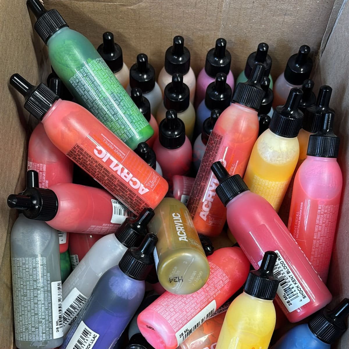 Montana Acrylic Paint Refill 25ml — это краска для заправки акриловых маркеров объемом 25мл, которая также подходит для сквизеров, аэрографов и нанесения кистью. Может использоваться в смешанной технике. Высокопигментированные акриловые чернила создают хорошее насыщенное покрытие. Быстро сохнет, устойчиво к ультрафиолетовому излучению и атмосферным воздействий. После полного высыхания становится матовой. Специальная 25 мл бутылочка с дозатором упрощает процесс заправки маркеров и смешивания. Цвета можно смешивать между собой, вы сможете создавать свои собственные оттенки. Краска отлично подходит не только для заправки акриловых маркеров Montana ACRYLIC , но и для создания рисунков в различных техниках. Ее можно использовать вместе с соответствующими цветами линейки Montana GOLD в аэрозоле. Может применяться на любых поверхностях, таких как холст, дерево, стекло, стены и металл. Отлично подходит для аэрокисти. Заполняйте краской маркеры Montana ACRYLIC под заправку. В качестве растворителя можно использовать ацетон. Не содержит сольвентов и ксилола. Сделано в Германии.