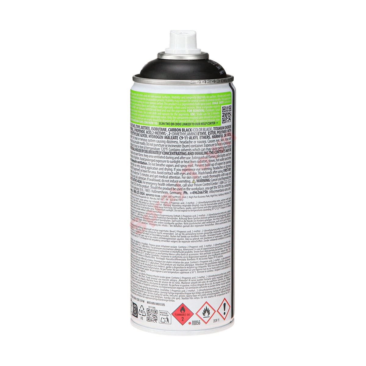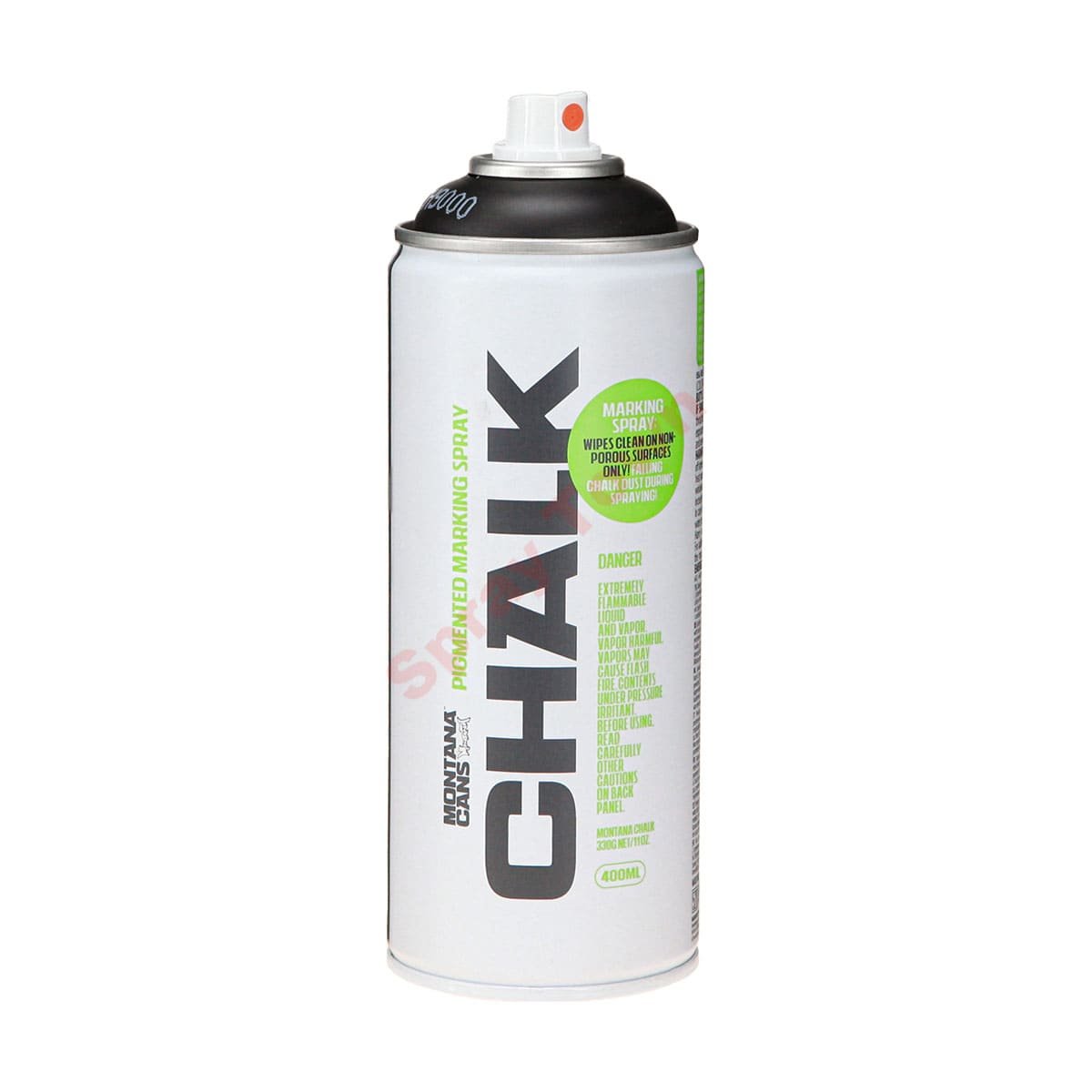 Montana CHALKSPRAY также хорошо работает на холсте, картоне или других грунтованных поверхностях, благодаря своему покрытию. CHALKSPRAY можно закрепить лаком (при использовании на холсте). Ее также можно наносить кистью, скребком или другими инструментами. Краска с низким давлением. Объем 400 мл.